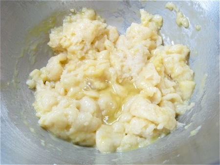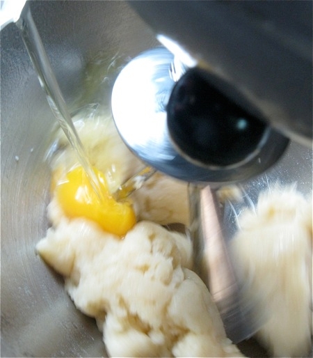 With the mixer running, add 3 large eggs, one at a time, beating well after each addition.