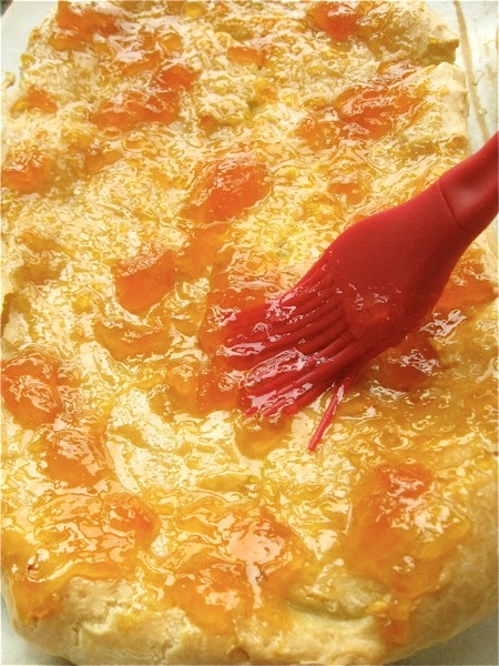 While the puffs are still warm, spread them with the jam or preserve of your choice. I'm an apricot lover, so that's always my choice. Except for an occasional foray into raspberry...