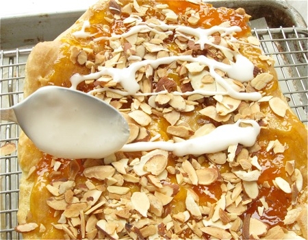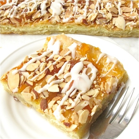 Why? Three reasons. First, it’s a wonderful culinary experience. The textural contrast between tender, buttery, flaky top crust and dense, moist buttery center; the tangy-sweet apricots paired with the rich flavor of toasted almonds; the creamy, almond-scented icing adding the perfect sweet finish… this is pure joy in every mouthful.