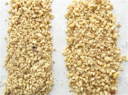 ...yields nicely chopped nuts. Turn the handle one way for a finer dice (left); the other, for more coarsely chopped nuts.
