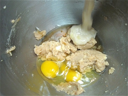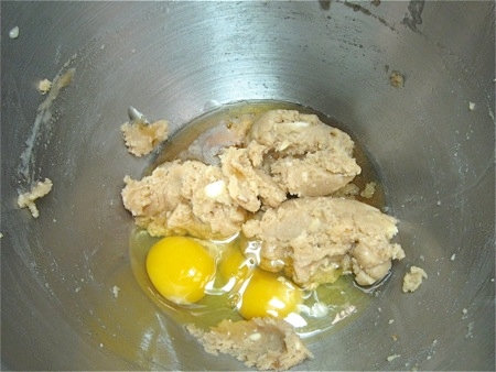 Add 1/4 cup (85g) honey, 2 large eggs...