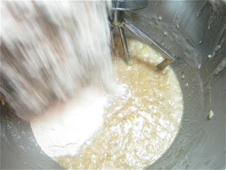 Next, the final key ingredient: flour. Add 2 cups (227g) King Arthur Golden Wheat. Milder Golden Wheat lacks the traditional, more assertive flavor of regular whole wheat, but still retains all the nutrition.