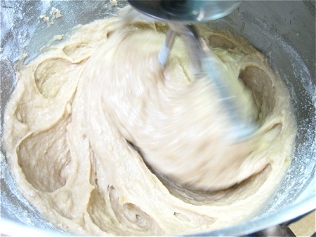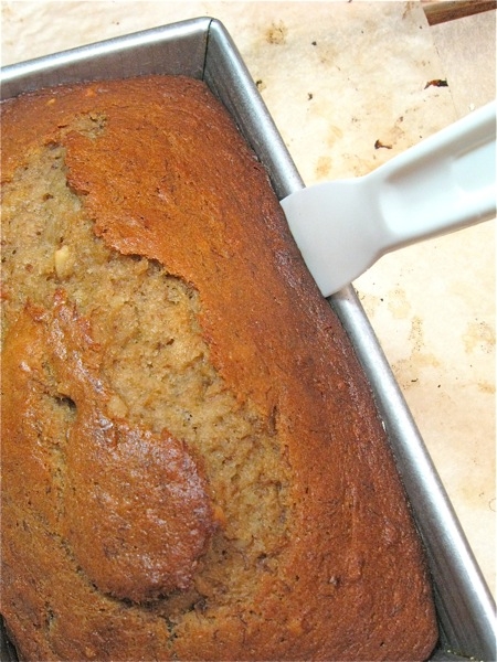 Time out for a tip: Most banana bread recipes call for mashed bananas, right? So after I made this bread the traditional way, by mashing the bananas first, I wondered, why bother? Why mash them first, when they're going to get all mashed up with the other ingredients, anyway?