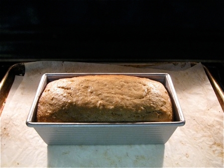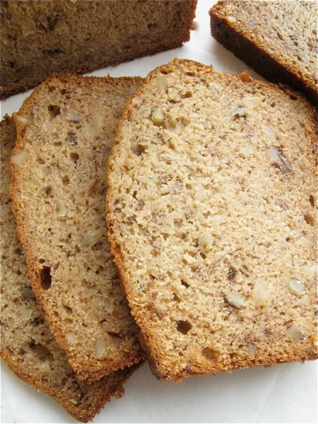 Yes, banana bread. Not sandwich bread, or whole wheat bread, or baguettes, or no-knead or zucchini. Just that comfortable old denizen of years gone by – dark, moist, tasty banana bread.