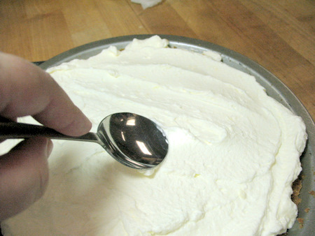 Pile the cream onto the pie and swirl with the back of a spoon.