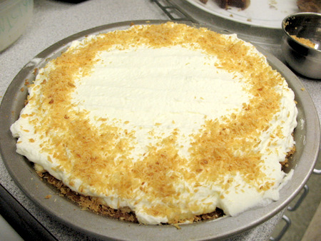Crunchy crust, rich custard-like filling, deep coconut flavor, and a hit of whipped cream. What could be better on a warm summer evening?