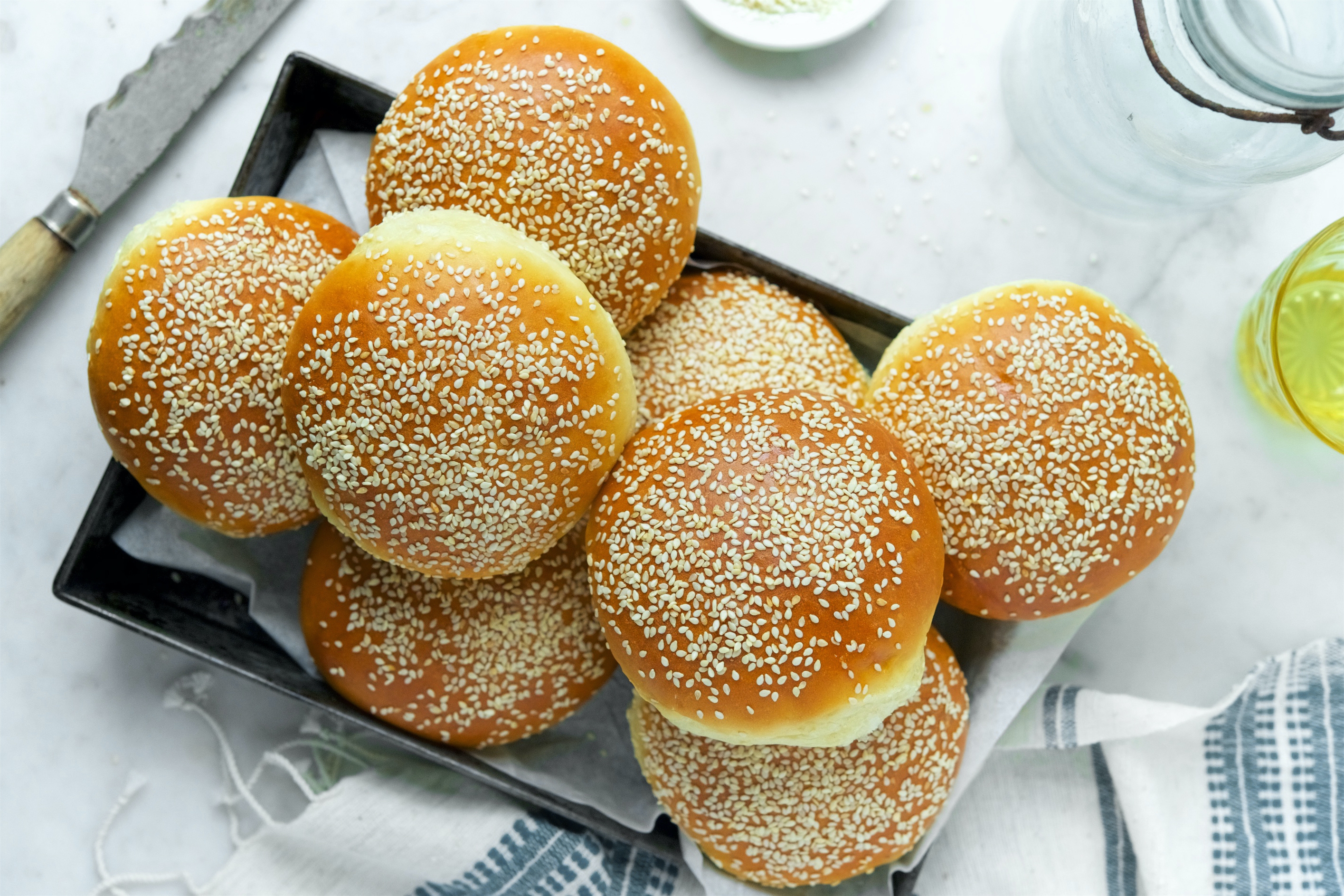 Soft and golden, butter-brushed, seed besprinkled...