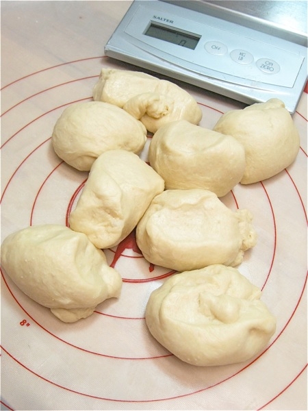 Gently deflate the dough, and divide it into 8 pieces.