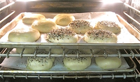 Hey, how come there are two pans of buns in the oven? Because I made a double recipe. Yeah, they're that good!