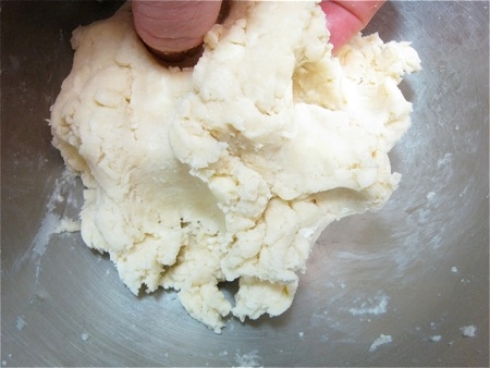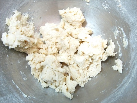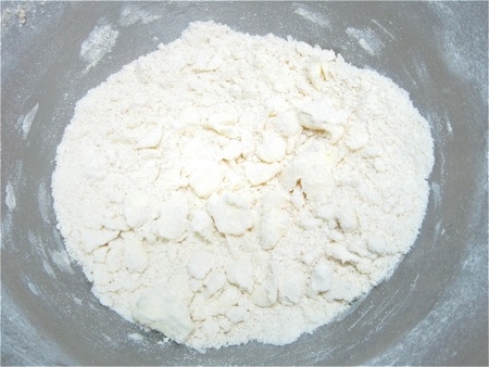 Work the butter into the dry ingredients to make an unevenly crumbly mixture.