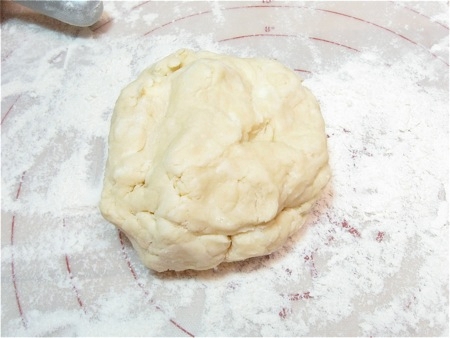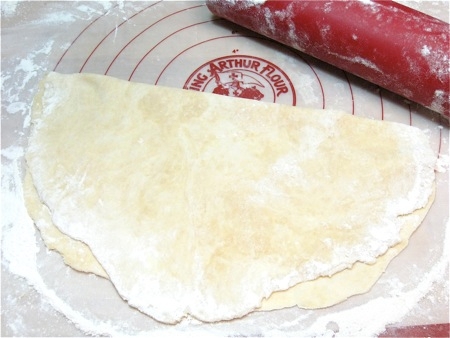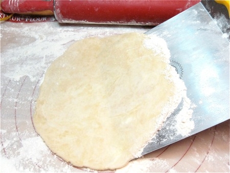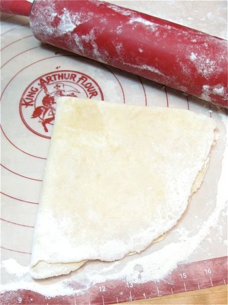 Place the dough on a floured work surface, and shape it into a rough disk. I love the ease afforded by a silicone rolling mat – not only does the dough not stick; when you're done, you just pick up the mat, shake any excess flour into the compost or rubbish bucket, and rinse clean.