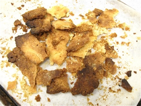 TOTAL DISASTER. Couldn't move it a single inch without it falling to pieces. I retrieved the pieces, threw them on a pan, and baked 'em, just because I knew they'd be tasty (they were).