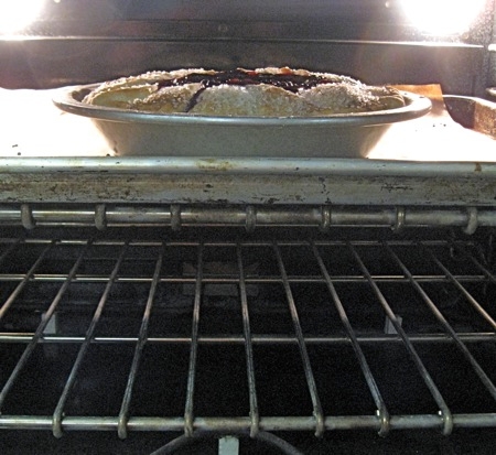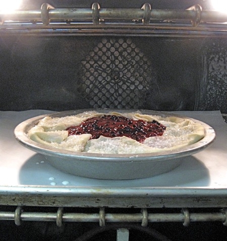 Remove the pie from the oven. Bubbling berries! Golden brown crust! Pat yourself on the back.