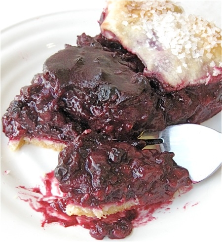 But don't cut the pie – yet. Tempting as it is, the filling has to set; cut it now, you'll have a lava-flow of berries rushing into the breach created by lifting out that first piece of warm pie.
