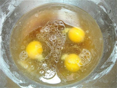 Add 1 cup of the dry ingredients to the egg/oil mixture, beating to combine.