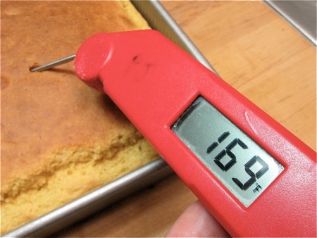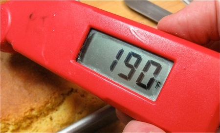 A toothpick did indeed come out clean at this point, but the internal temperature was just 169°F – too low. The cornbread would have been gummy if I hadn't returned it to the oven.