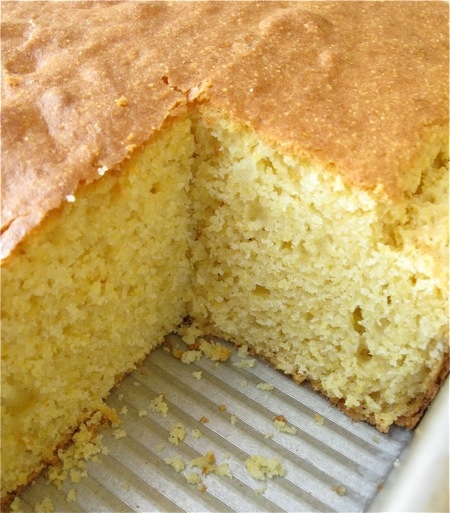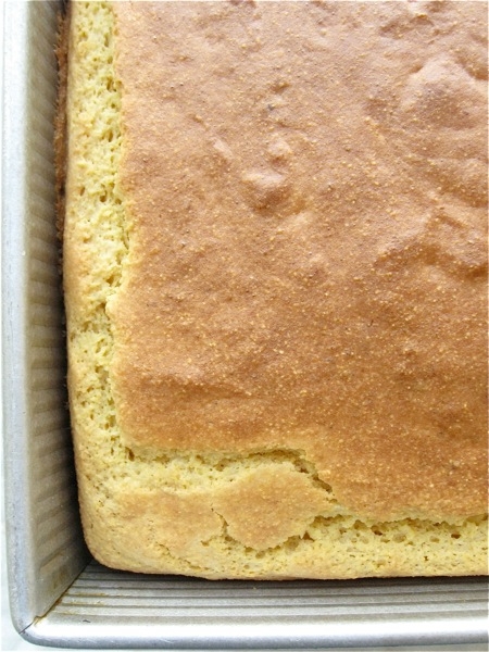 Did I mention this is one TALL cornbread?! The angle exaggerates a bit, but the bread is a good 2" high.