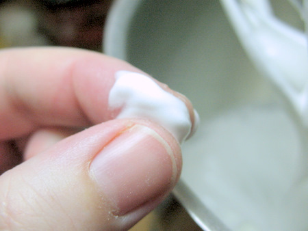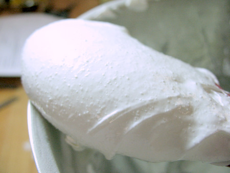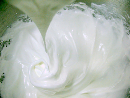 So, let's say you used regular table sugar in your meringue. At this stage, you'd still be seeing grains of sugar in your meringue. It's worth the extra effort to grind your sugar finely, or use superfine.
