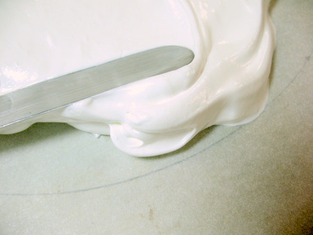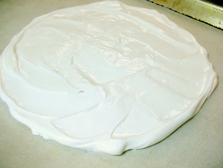 Use an offset or flat spatula to spread the meringue into an even layer over the entire circle.