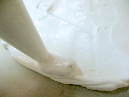 Cover the outside of the mound with the whipped cream all the way down to the plate.