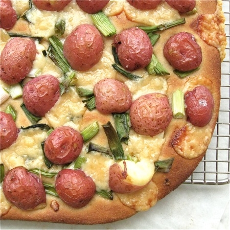 I knew. I bent my head to cover a self-satisfied smirk. There's absolutely nothing not to like about hot, buttery roasted potatoes. And onions. And melting cheese. Especially when it's all on top of a crisp-chewy, whole wheat crust absolutely packed with vitamins, minerals, antioxidants – and flavor.