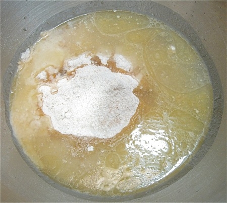 Combine all of the ingredients, and allow to rest, covered, for 30 minutes; this gives the whole wheat flour a chance to absorb the liquid.