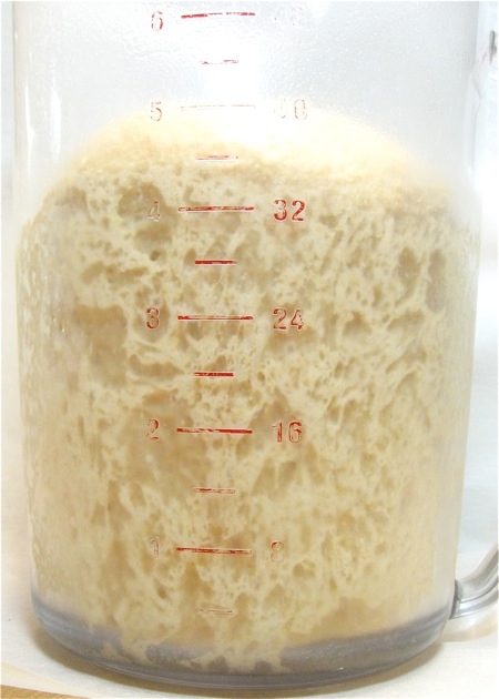 Remove the dough from the fridge. For 100% whole wheat dough, that's a nice rise, isn't it?
