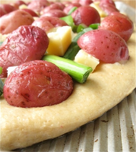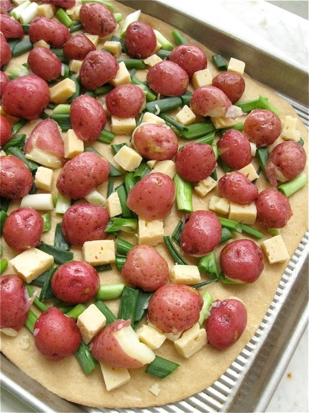 Feel free to use any of your favorite toppings on this crust - especially if you're of the "ewww, potatoes on pizza" school of gourmanderie. But if you're willing to give potato pizza a try, here's how.