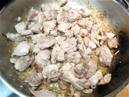Heat 1 tablespoon olive oil in a skillet over medium high heat. Add the chicken and sauté until the edges begin to brown, about 10 minutes.