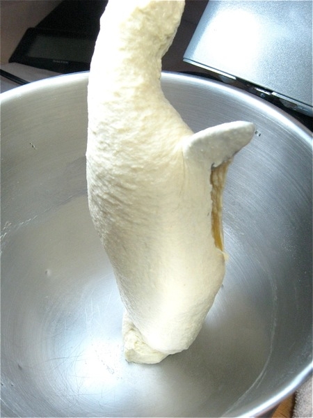 See how the dough is just barely sticking to the bowl, right around the edges? LOVE this texture. It's the best of both worlds: stiff enough to work with, sticky enough to rise nicely.