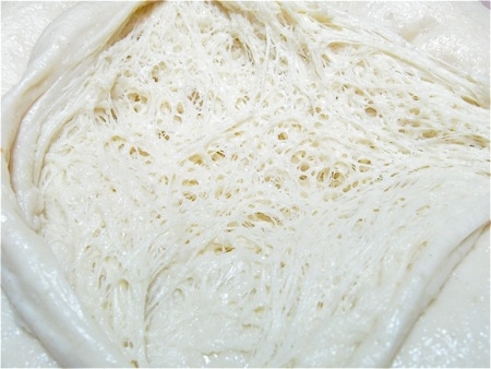 This is what they mean when they say "a web of gluten strands." You're actually seeing a web of dough, but each of those dough strands is made up of gluten strands... pretty interesting, eh?