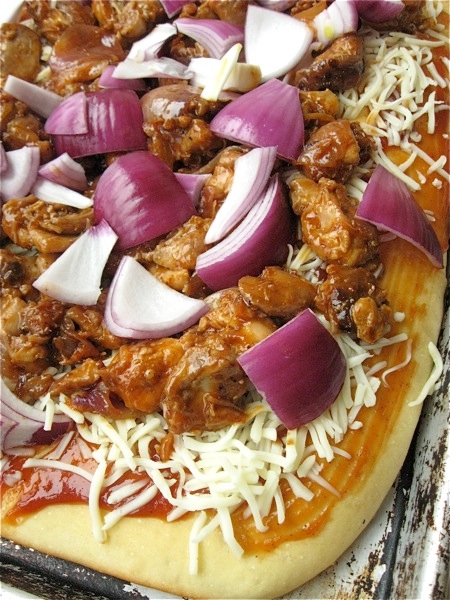 Which brings us back to where we started: that leftover chicken in your fridge. You'll need about 1 1/2 pounds of boneless barbecued chicken for the following pizza.