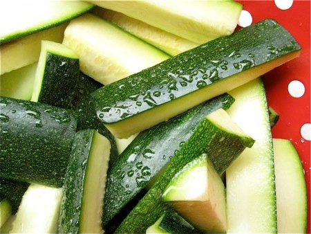 That won't be hard at this time of the year, right? Don't be tempted to use those baseball-bat-sized zucchini hiding under the leaves in your garden, though; you want small, slim zucchini here.