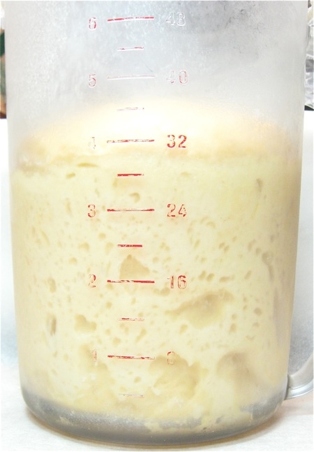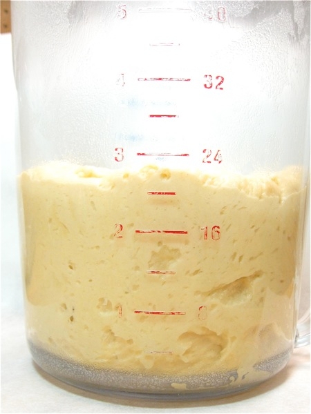 I let this dough chill overnight. As you can see, it continued to rise a bit, even in the fridge. This long, slow rise helps develop flavor.