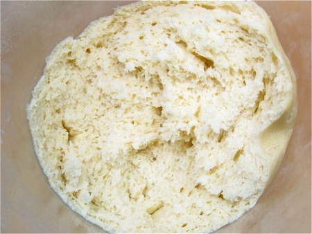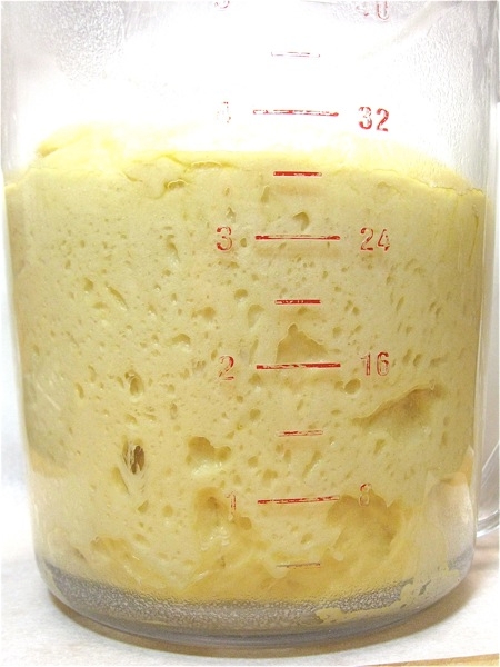 And the yeast is working, too. Cold brioche dough feels like cold clay - it's not elastic at all. But I pulled off just the top of the risen dough, and look at all the air bubbles inside.