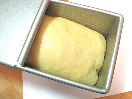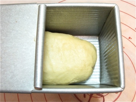 Place the log in the lightly greased pain de mie pan. Pull the cover closed, and let the dough rise for up to 5 hours or so; remember, it's cold and needs to first warm to room temperature, then rise.