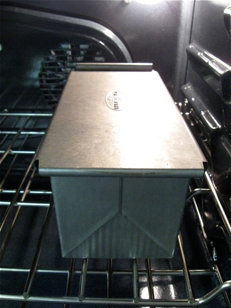 Next: choose your pan. I'm using a small (9" x 4") covered pain de mie pan, because I'm going to use this loaf for French toast, and the pain de mie pan makes a fine-grained loaf that yields beautifully square slices.