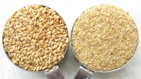 And here are two more of our favorite ingredients: golden flax seed on the left, and milled golden flax on the right.