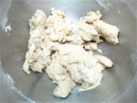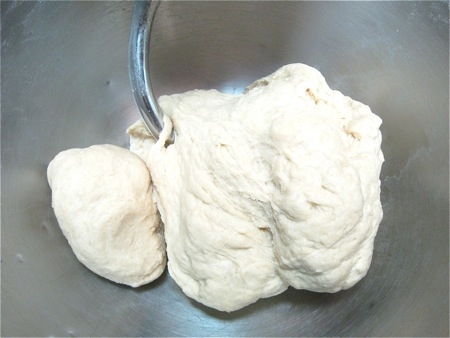 See how the dough above formed separate pieces? That means it's a bit too stiff. I kneaded in another tablespoon of water.