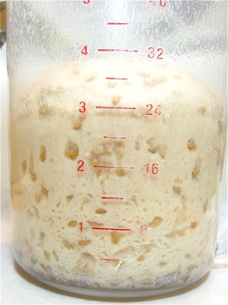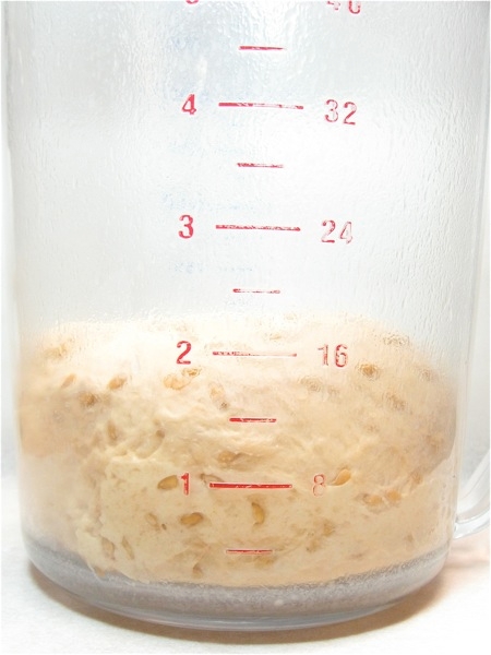 Put the dough in a lightly greased bowl, or an 8-cup measure, as I'm doing here.
