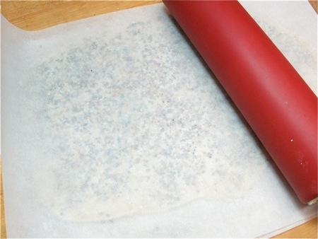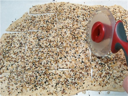 Note: If you don't have parchment, do your rolling on a rolling mat or on a very lightly floured or lightly greased work surface; and transfer the seeded, uncut crackers to a lightly greased baking sheet. Cut right on the sheet.