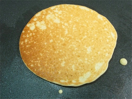 See how the pancake is beginning to lose its wet shine? Time to flip.