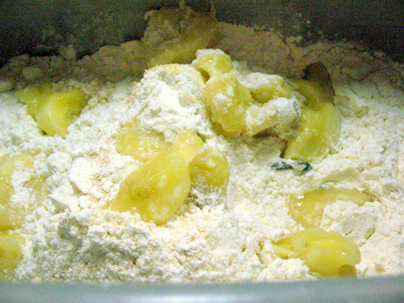 I wasn't sure at first how much banana to use so I tossed in one whole small banana. I had to add more milk to the dough, so I knew the bread could handle a whole medium banana, and that is what I've used ever since. In my mind I was just picturing a bread that would make a nice slice to eat with butter, but you'll be amazed at the different ways our taste tested thought to use this bread. More on this later.