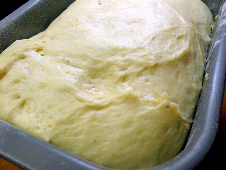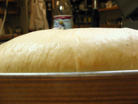 Check it out. When viewed from the side, the dome of the bread has crested the edge of the pan by about 1 inch, so this bread is ready for the oven.