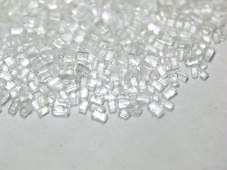 Item 1240, sparkling white sugar. If I had to pick one sugar as Miss Popularity, I'd say the honor would go to this classy sugar. Clear, large, flat crystals catch and reflect the light like sequins on a circus star's costume, and have everyone's attention from minute one. How much do we love sparkling white sugar in the test kitchen? Let's just say that we don't have just a container at a work station; we have a 4-quart bin at the ready.