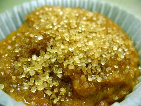 Here it is with pearl sugar. See what I mean about the brilliant contrast between the dark muffin and the pure white sugar?