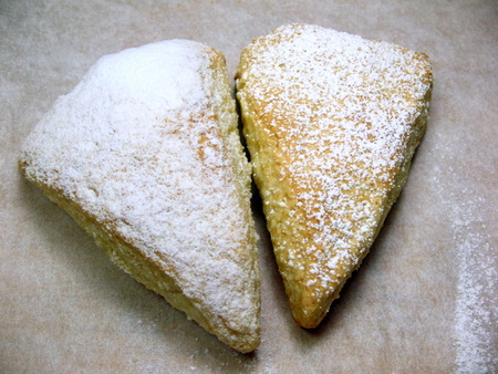 Here's a closer look at the Snow White Non-Melting (left) and regular confectioners' sugar (right). You can see that the Snow White provides a more even coating, as the same amount of sugar was used on each piece and the same sifter as well.