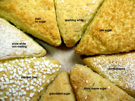 Table sugar may be the cotton, but in the world of sugar there is a whole host of other "fabrics" to play with. Known as specialty sugars collectively, these are the bright buttons, shiny snaps, and feather boas for your baked goods. A bit of bling-bling, a dash of haberdashery if you will, these are the pearls for the little black dress that's your favorite basic recipe.