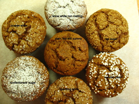 Swedish pearl sugar. Small beads of pure white, Swedish pearl sugar is the baby cousin to Belgian pearl sugar, the famed ingredient in Liege waffles. Used atop deeply colored pumpkin or gingerbread muffins, pearl sugar really makes a statement. Its craggy look is complemented by great crunch. Of all the sugars, I'd say this one makes folks sit up and take notice of otherwise quiet pastries.