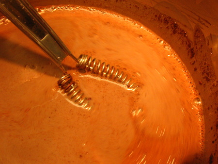 Whisk constantly until the chocolate is melted and the milk is hot. Keeping the milk in motion will prevent scorching.